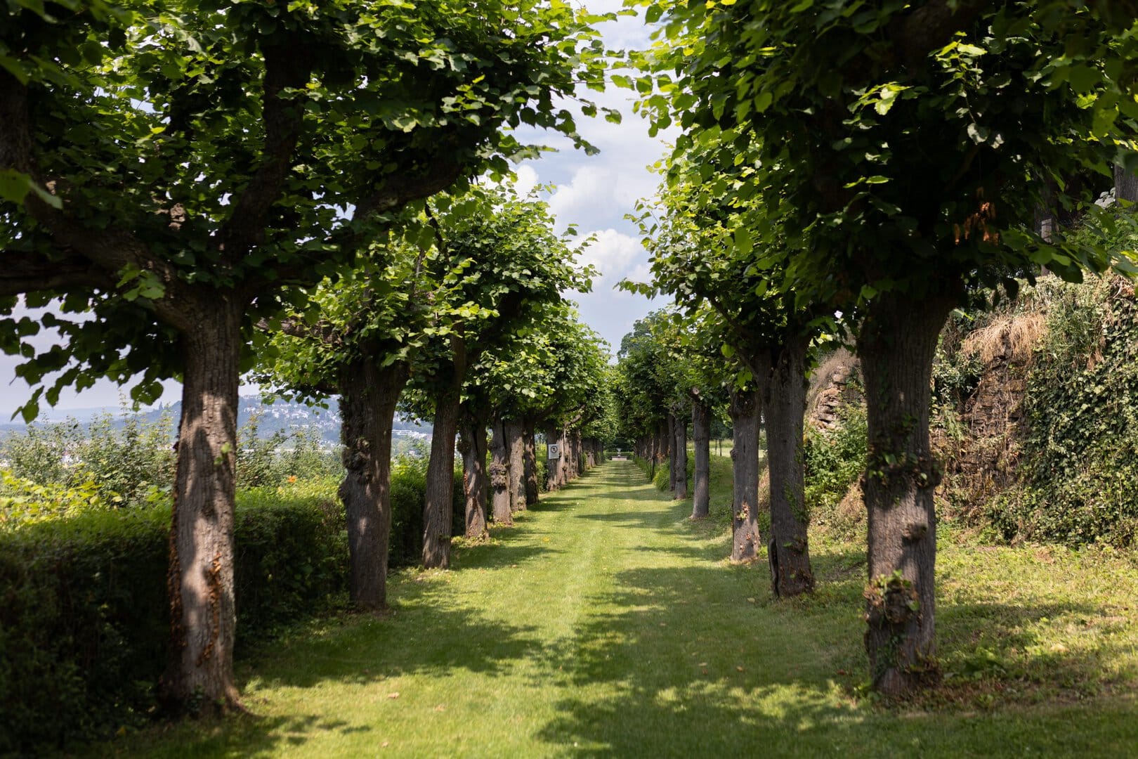Hier genießt ihr hier ganz exklusiv einen unvergleichlichen Ausblick während der freien Trauung und dem Sektempfang. Ein weiteres Highlight ist die traumhafte Baumallee entlang des Rheins – hier können unvergleichliche Hochzeitserinnerungen und traumhafte Hochzeitsfotos entstehen.