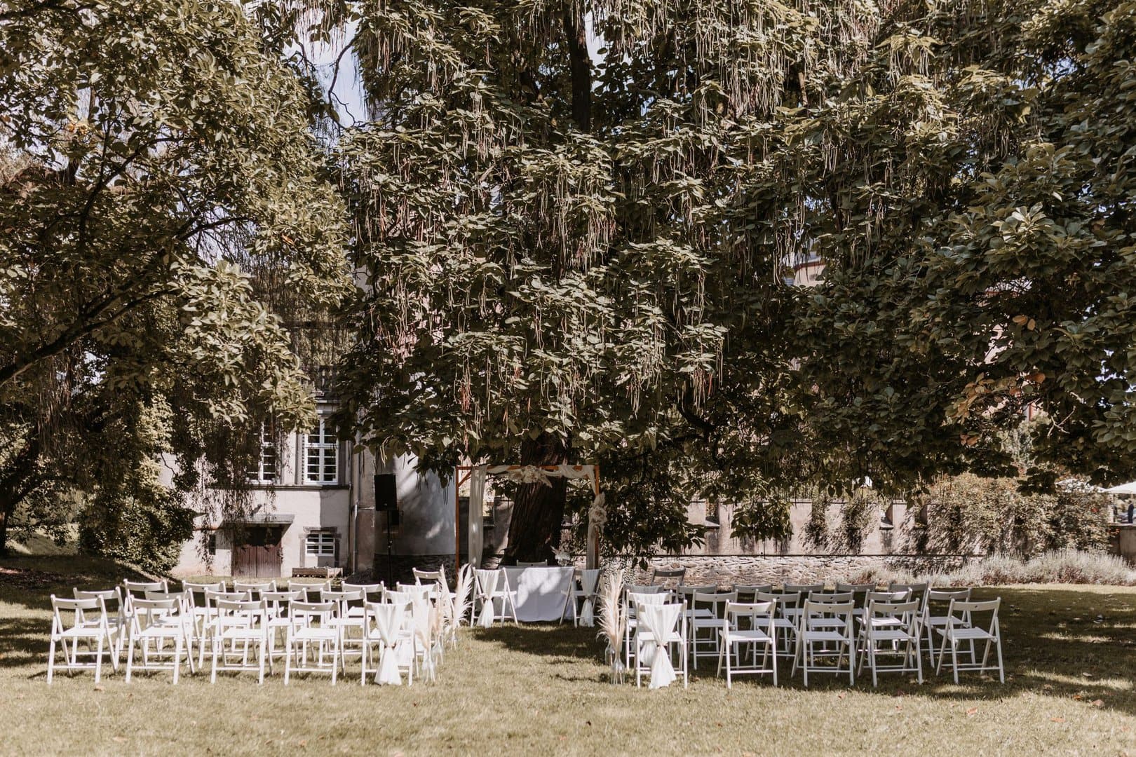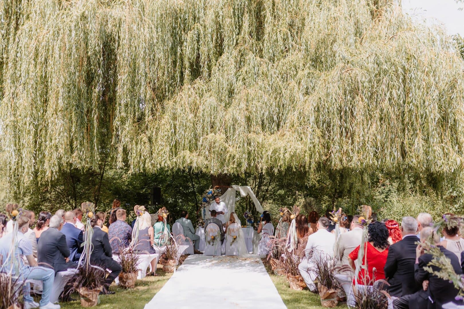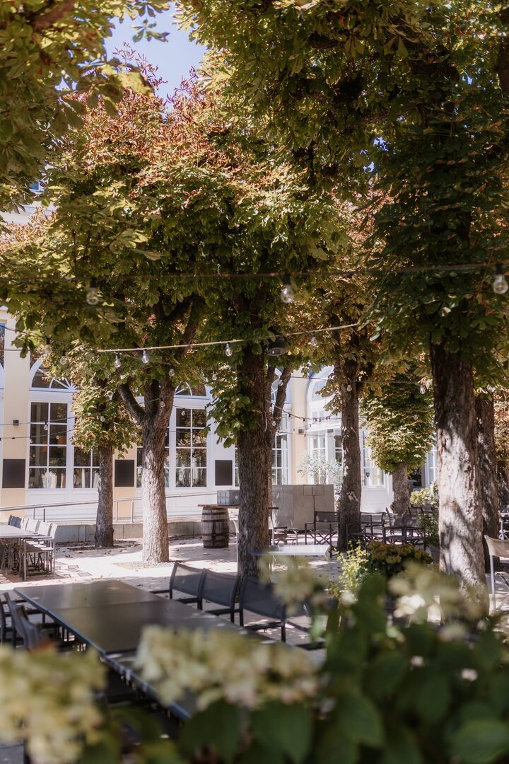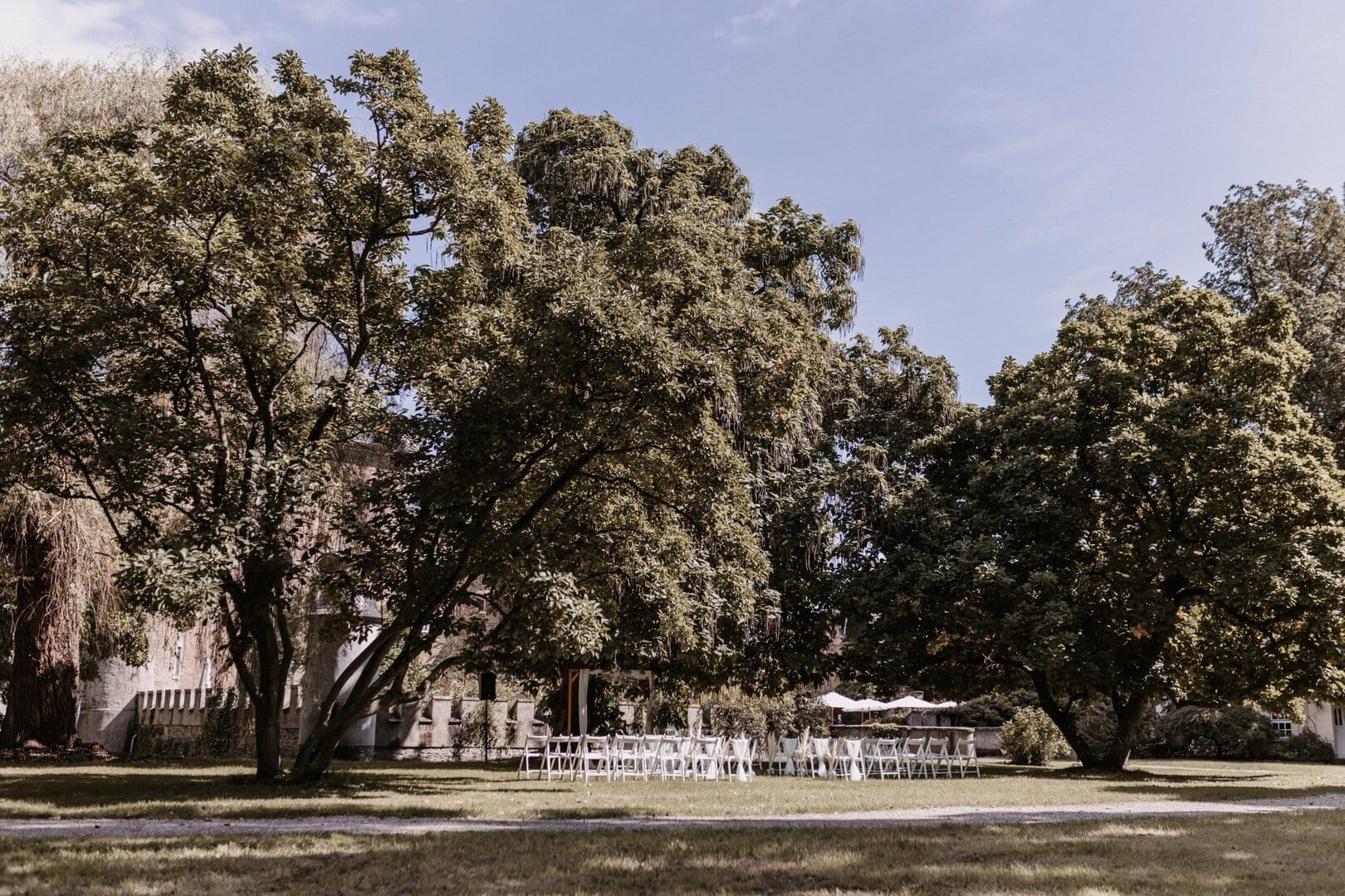 Ein besonderes Highlight ist der wunderschöne Außenbereich des Casinos, der sich im Sommer perfekt für freie Trauungen im Freien anbietet. Hier könnt ihr eure Zeremonie unter einer wunderschönen Weide in einer natürlichen und romantischen Umgebung stattfinden lassen.